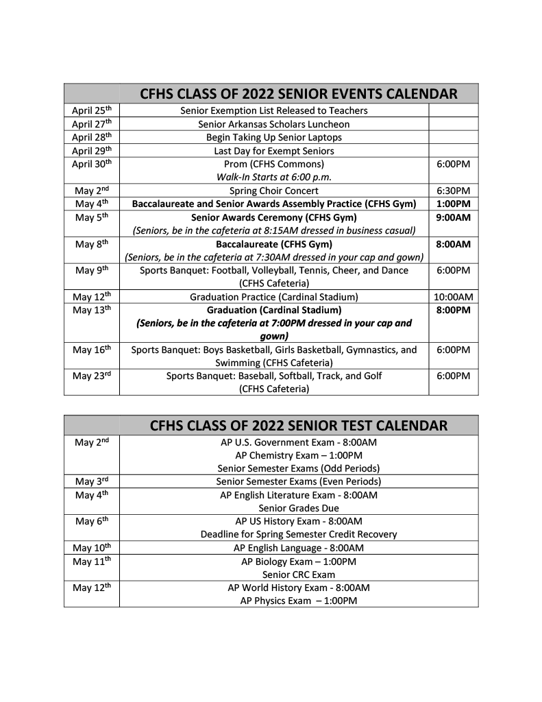 Camden Fairview High School is excited to honor the Class of 2022 Seniors! Here are the upcoming Senior Events and Senior Test Calendars. Congratulations to our seniors and their families on this accomplishment!